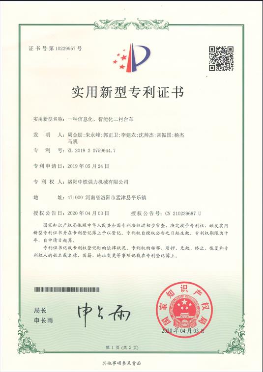 一種信息化、智能化二襯臺車 |