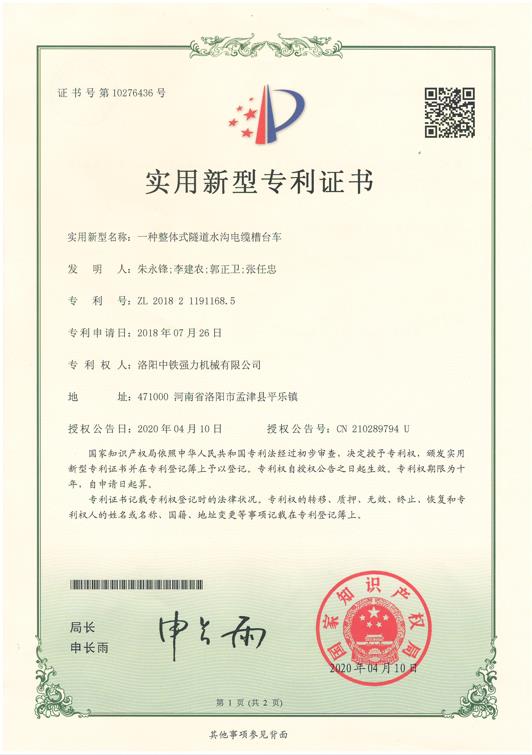 一種整體式隧道水溝電纜槽臺車 |