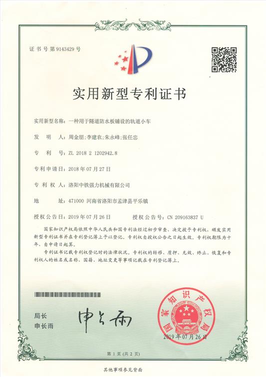 一種用于隧道防水板鋪設(shè)的軌道小車 |
