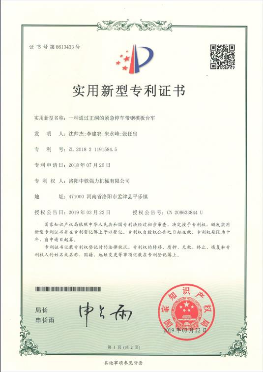 一種通過正洞的緊急停車帶鋼模板臺車 |